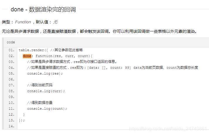 done: function(res, curr, count) { if(res.data.length > 0) { $.each(res.data, function(ii, dd) { if(NOTNULL(dd.islatetime)) { if(parseInt(dd.islatetime)>0) { $($(".layui-table-body.layui-table-main tr")[ii]).css("color", "red"); $($("div .layui-table-fixed.layui-table-fixed-l .layui-table-body tr")[ii]).css("color", "red"); } } }); } } //改变背景颜色